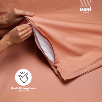 Met dit luxe Muné-overtrek doe je jezelf rust cadeau. Dankzij een weggewerkte rits en 2 handige gleuven wordt je bed verschonen een klusje van maar een paar minuten. Easy peasy!